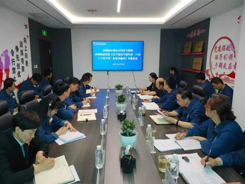 龍鋼公司召開周黨政工作會。會上認(rèn)真學(xué)習(xí)解讀了陜鋼集團(tuán)黨委關(guān)于落實干部作風(fēng)“八講二十四不準(zhǔn)”規(guī)定的內(nèi)容和要求。