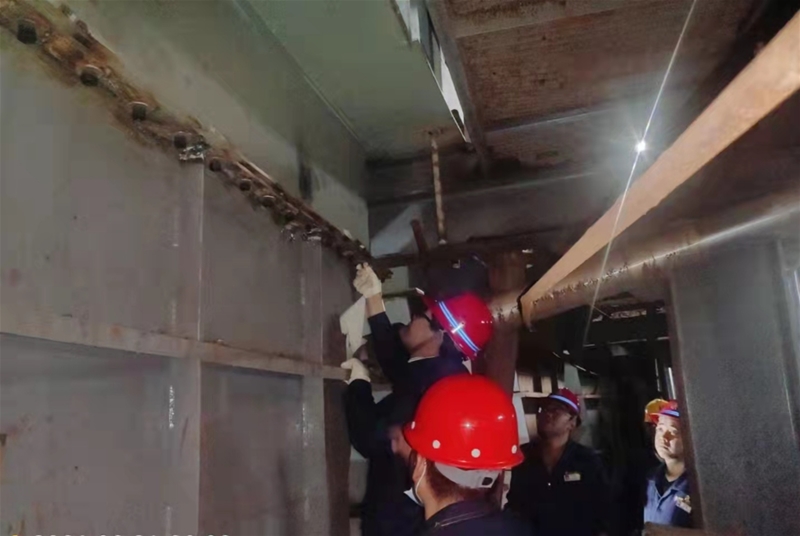 在檢修現(xiàn)場,劉安民了解了檢修計(jì)劃、工程進(jìn)度等情況,詢問了檢修進(jìn)展、存在困難及重點(diǎn)環(huán)節(jié)等,并詳細(xì)了解了450平方米燒結(jié)機(jī)成品區(qū)域環(huán)冷機(jī)檢修質(zhì)量和進(jìn)度,詢問了外協(xié)單位資質(zhì)、施工工藝和工期情況,重點(diǎn)了解了450平方米燒結(jié)機(jī)混料區(qū)域鋼托輥和鋼絲繩更換項(xiàng)目、臺車區(qū)域陶瓷襯板和風(fēng)箱消缺項(xiàng)目、送料器安裝項(xiàng)目、點(diǎn)火機(jī)試機(jī)校正項(xiàng)目、布料帶軌道安裝項(xiàng)目等。同時叮囑現(xiàn)場職工及外協(xié)人員要穿戴好勞護(hù)用品,在確保安全的前提下,保證施工進(jìn)度和質(zhì)量。