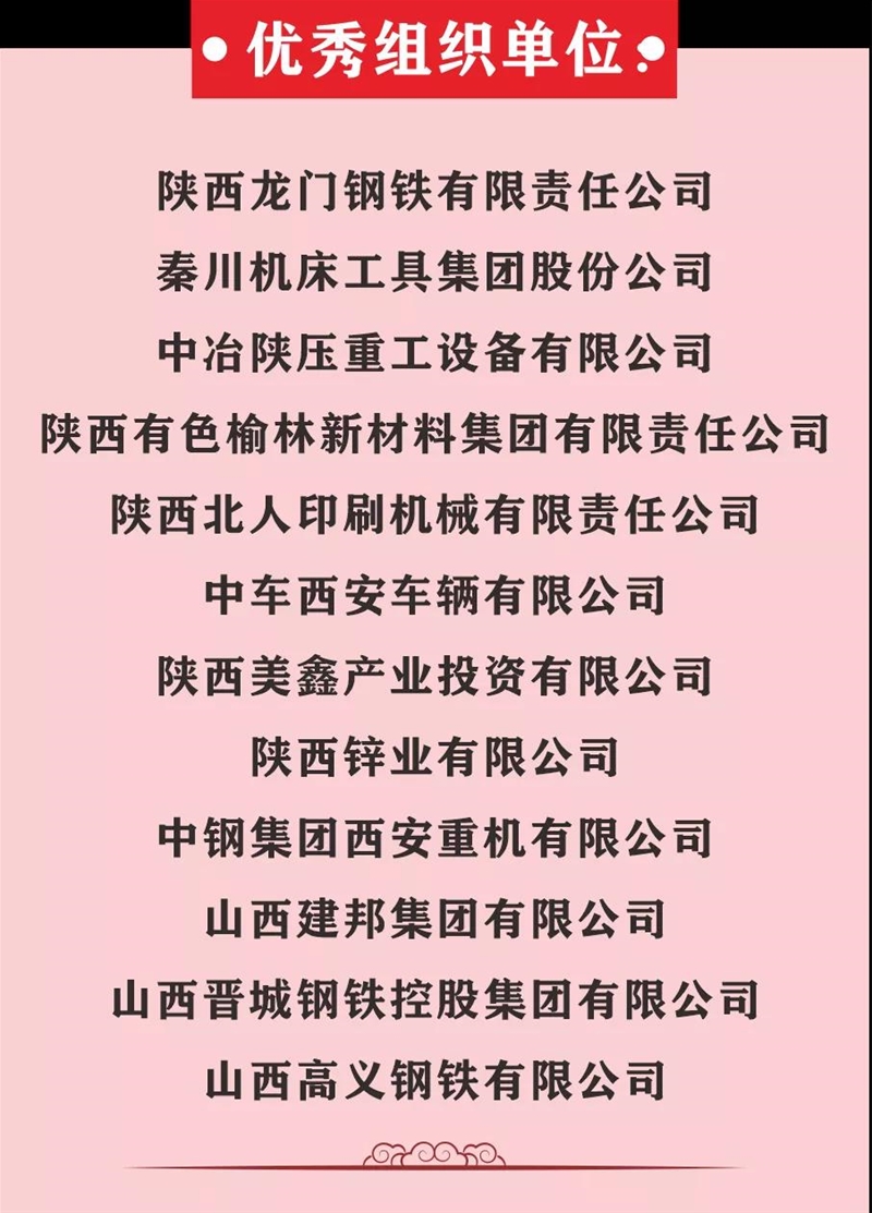 她要求,一是陜鋼集團作為承辦方,繼續(xù)強化責任擔當,發(fā)揮示范作用,把陜西鋼鐵產(chǎn)業(yè)工人隊伍建設好,激發(fā)新時代產(chǎn)業(yè)工人的積極性、主動性、創(chuàng)造性。二是省機械冶金建材系統(tǒng)各級工會組織要深入學習貫徹習近平總書記來陜考察重要講話精神,突出職工思想政治引領;要圍繞中心,服務大局,結合“我為群眾辦實事”實踐活動,解決好職工群眾關心、操心、揪心的事;要大力弘揚勞模精神、勞動精神、工匠精神,建設一支知識型、技能型、創(chuàng)新型的新時期產(chǎn)業(yè)工人隊伍。三是廣大職工要立足崗位,銳意進取,不斷提升專業(yè)技術水平和崗位創(chuàng)新能力,發(fā)揮“主力軍”作用,為陜西高質量發(fā)展貢獻智慧和力量。