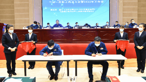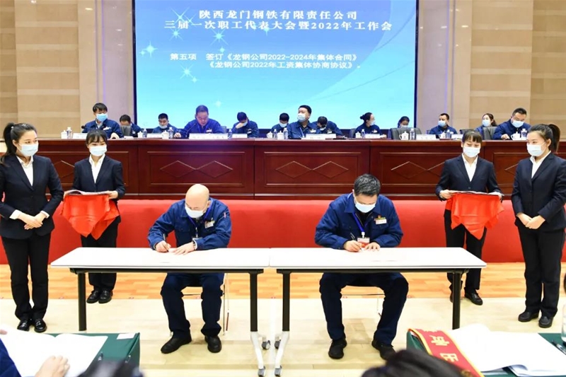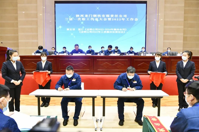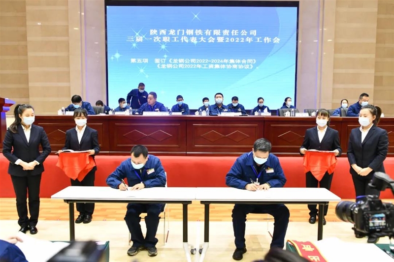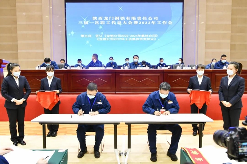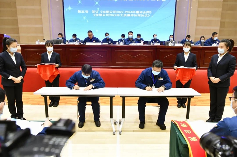 會上簽訂了《龍鋼公司2022-2024年集體合同》《龍鋼公司2022年工資集體協(xié)商協(xié)議》,以及《2022年度契約化經(jīng)營業(yè)績責任書》《2022年度安全環(huán)保目標責任書》。
