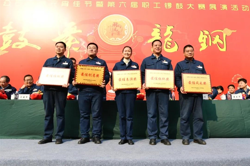 經(jīng)過兩個多小時的激情展演,綜合服務(wù)公司與機(jī)關(guān)、華龍耐材公司組成的聯(lián)隊(duì)獲得第六屆“鼓舞龍鋼”鑼鼓表演賽最佳形象獎,軋鋼廠獲得最佳編排獎,煉鐵廠獲得最佳創(chuàng)意獎,能源檢計量中心獲得最佳風(fēng)采獎,煉鋼廠獲得最佳表演獎,儲運(yùn)中心獲得最佳組織獎。