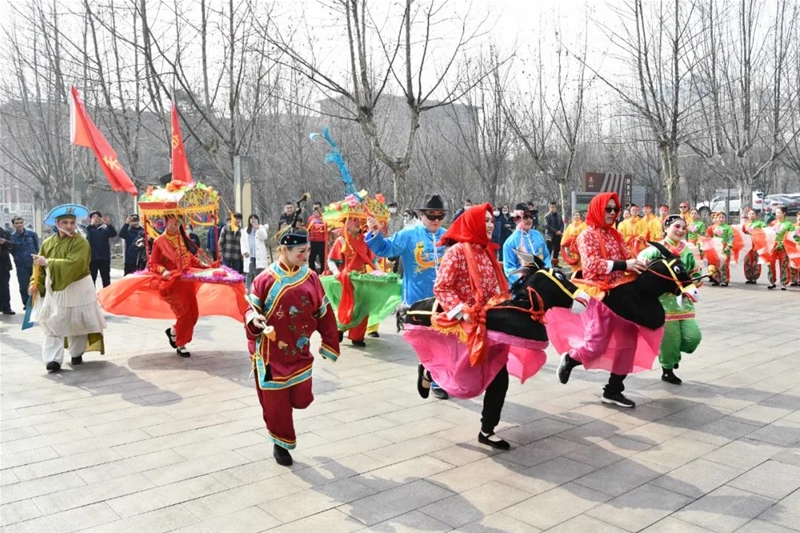 以歡快的秧歌和傳統(tǒng)的旱船