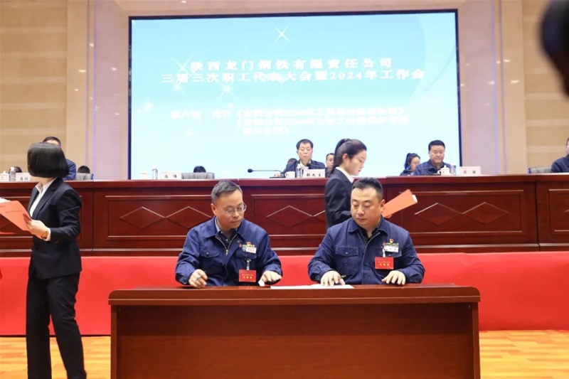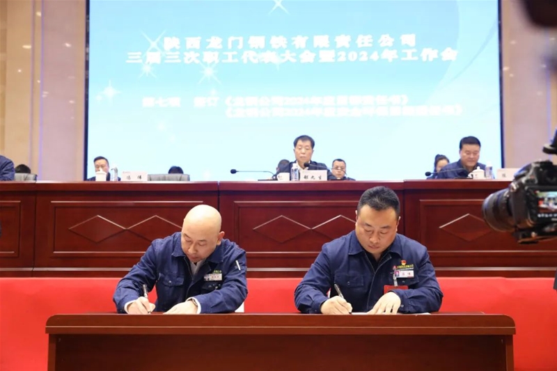 會上還傳達學習了陜煤集團、陜鋼集團三屆三次職代會暨2024年工作會精神,進行了民主評議領導干部。書面審議并通過了龍鋼公司《2023年經營業(yè)績完成情況報告》《2023年安全環(huán)保目標責任完成情況報告》《2023年“三公經費”支出情況報告》《2023年工資集體協(xié)商協(xié)議執(zhí)行情況報告》《三屆二次職代會提案落實情況及三屆三次職代會提案征集情況報告》《2024年工資集體協(xié)商協(xié)議(草案)》《2024年女職工權益保護專項集體合同(草案)》。