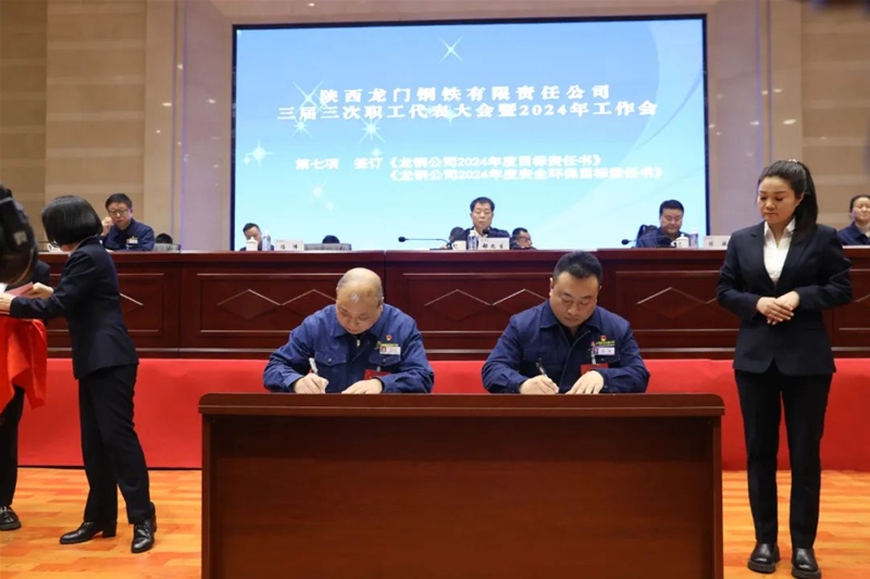 1月31日,公司召開三屆三次職工代表大會暨2024年工作會,全面貫徹黨的二十大精神和省委十四屆五次全會決策部署,落實全省國資系統(tǒng)工作會議和陜煤集團、陜鋼集團三屆三次職代會暨2024年工作會議要求,全面總結2023年工作,認真分析當前面臨的新形勢、新機遇和新挑戰(zhàn),系統(tǒng)部署2024年重點工作,動員廣大干部職工堅定信心、奮勇前行,頂住壓力、沖破阻力、保持定力,在治虧創(chuàng)效中創(chuàng)造新業(yè)績,走好行業(yè)周期下的新長征路,破釜沉舟打贏生存保衛(wèi)戰(zhàn),朝著打造中國西部最具競爭力的高端鋼鐵材料服務商,建成美麗幸福新陜鋼的愿景目標砥礪奮進!陜鋼集團黨委委員、總工程師郗九生出席會議。公司領導班子成員、293名職工代表、24名工作會代表以及獲獎集體代表、獲獎個人共500余人參加會議。