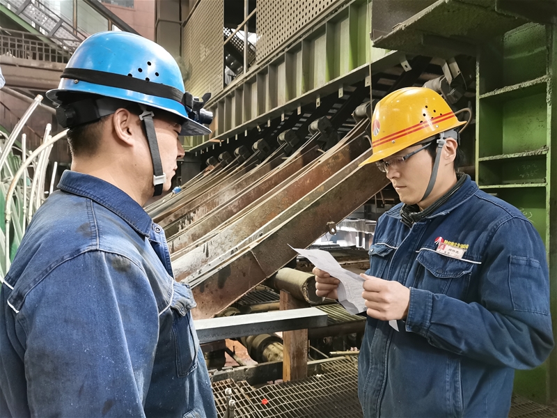 “張哥,幫我遞一下扳手。”在拉矯機(jī)旁邊傳出一個響亮的聲音,原來是正在對拉矯處設(shè)備進(jìn)行處理的維修工白巖。