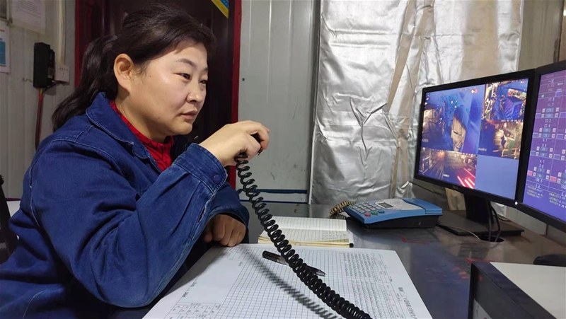推鋼室內(nèi),推鋼工雷蕾在認(rèn)真操作著,另一名推鋼工邱潔在書寫推鋼記錄。因?yàn)槭峭膺\(yùn)鑄坯,推鋼室不斷有司機(jī)進(jìn)出開(kāi)票,她們毫無(wú)怨言,熱情接待。