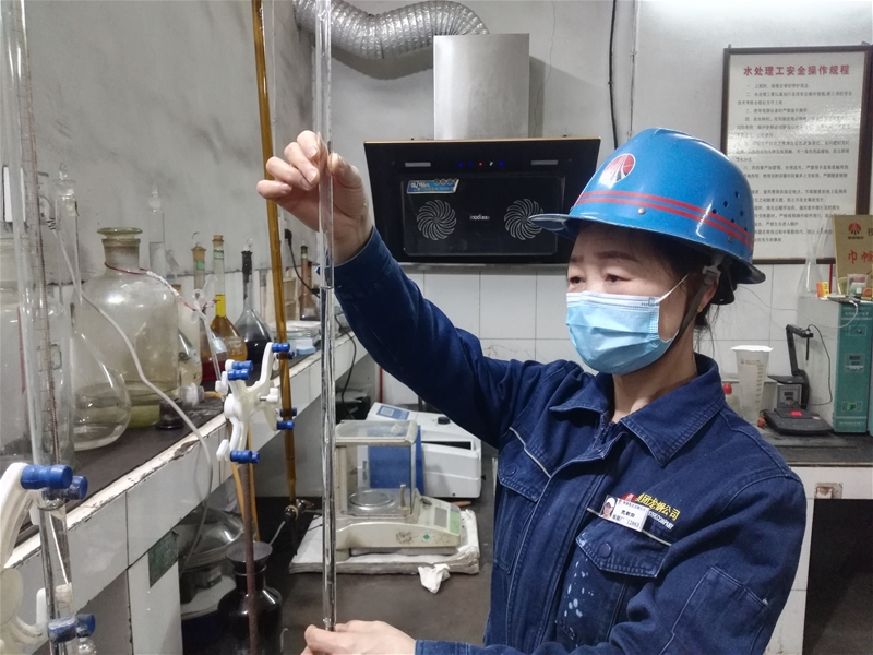 榮獲陜鋼“好媳婦”榮譽(yù)的黨朝陽(yáng)平日既要照顧八十多歲的公公、婆婆,還得料理好自己的小家。但她的工作也干得有聲有色、毫不馬虎。這會(huì)她正在忙著化驗(yàn)水質(zhì),剛接班,只見(jiàn)操作臺(tái)上擺滿(mǎn)了從轉(zhuǎn)爐、連鑄各個(gè)泵房取來(lái)的二冷水、結(jié)晶器水、除塵水水樣,她忙而不亂、井然有序地操作化驗(yàn)器具,一會(huì)在濁度儀上監(jiān)測(cè)水質(zhì)濁度,一會(huì)用酸度計(jì)測(cè)量PH值,一會(huì)又忙著測(cè)水中懸浮物、含油量、磷酸根……