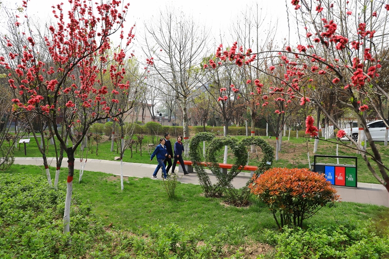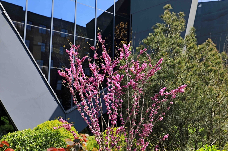 圖一:紅的似火,粉的似霞,白的如雪,綠的如油,春日鋼城宛如童話般世界。