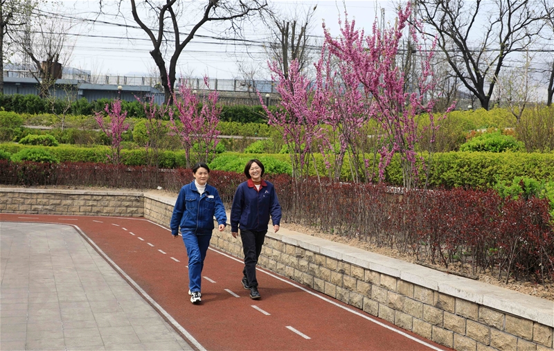 圖四:午后,職工們紛紛走出辦公室,活動(dòng)活動(dòng)筋骨,感受春日里的美好,享受運(yùn)動(dòng)帶來的快樂。