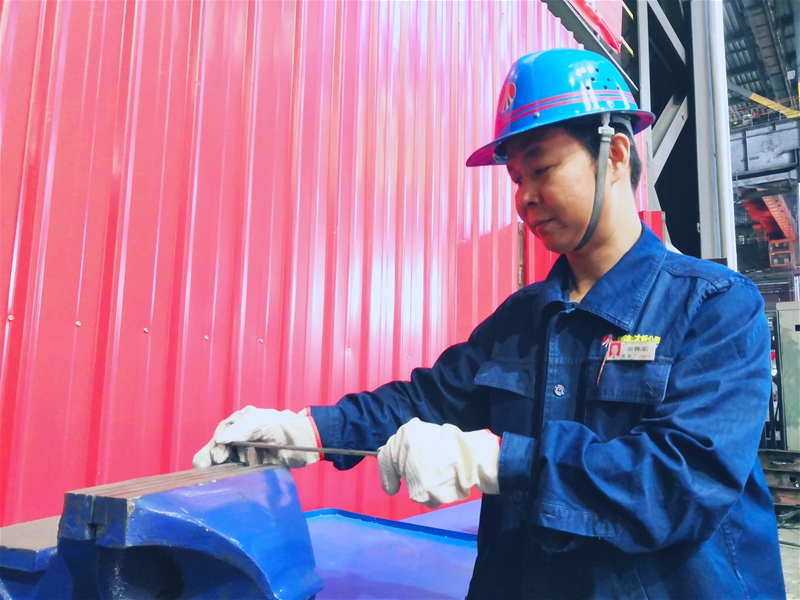 在炎熱的廠房里有這樣一個(gè)人,他被稱為給設(shè)備看病的醫(yī)生,他就是作業(yè)區(qū)點(diǎn)檢組組長(zhǎng)——梁韓軍。