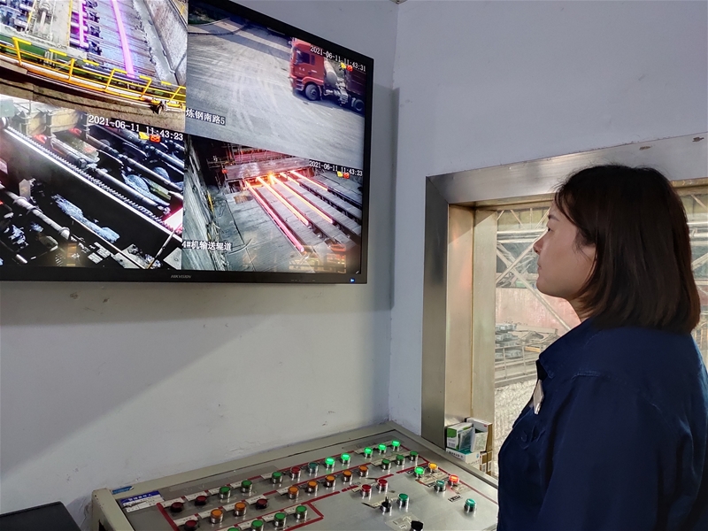 推鋼室內(nèi),操作工史曉琦一邊關(guān)注著AI智能出坯系統(tǒng)的運(yùn)行情況,享受著智能化操作的好處,一邊看著臺(tái)下推鋼機(jī)的運(yùn)行狀況。她說(shuō),“之前人工操作不免會(huì)發(fā)生一些瑕疵,如鑄坯推不齊、鑄坯推彎等情況,這就要求推鋼時(shí)必須注意力高度集中,精心操作。自從AI智能出坯系統(tǒng)投入后,我們?cè)僖膊粨?dān)心這種情況發(fā)生了,它解放了我們的雙手和大腦,自動(dòng)出坯、推鋼,智能控制各種參數(shù),通過(guò)計(jì)算出坯的速度,設(shè)定推鋼機(jī)的運(yùn)行時(shí)間,順利將鑄坯推上冷床。”她一邊說(shuō),一邊記錄著推鋼支數(shù)……在這炎炎夏日,連鑄的推鋼工和拉矯剪切工們一直堅(jiān)守在崗位,一起見(jiàn)證智能化帶來(lái)的累累碩果。