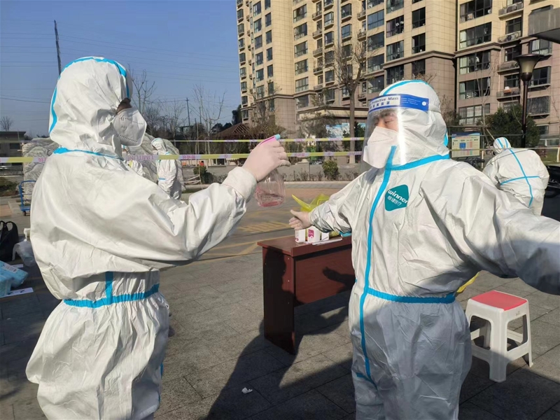 圖四:同晨妮:我的職責(zé)是早上6:00開始將核酸管的條碼貼好,做好核酸檢測前準(zhǔn)備工作;6:30開始協(xié)助醫(yī)護(hù)人員做核酸,維護(hù)隊伍秩序;10:30核酸結(jié)束后,收拾清理核酸垃圾,將警戒帶及桌凳轉(zhuǎn)移到庫房,核酸檢測完對接收的隔離區(qū)域的物品及物資進(jìn)行分類消殺和轉(zhuǎn)移,并幫助隔離住戶購買天然氣等,配合隔離區(qū)域做好防護(hù)工作。