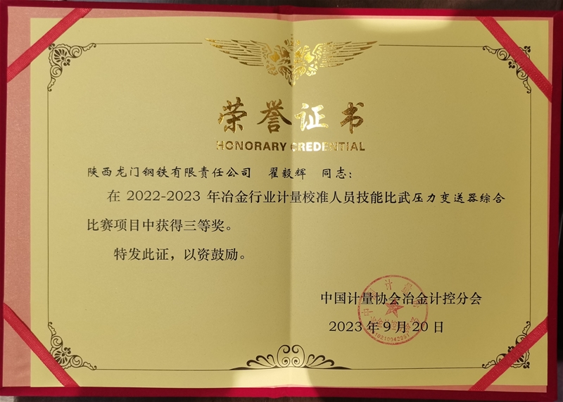 近日,龍鋼公司榮獲首屆全國(guó)冶金行業(yè)計(jì)量校準(zhǔn)技能比賽優(yōu)秀組織獎(jiǎng)。同時(shí)獲得4項(xiàng)個(gè)人獎(jiǎng)項(xiàng)。其中翟毅輝《溫度變送器綜合比賽》獲得二等獎(jiǎng)、《壓力變送器綜合比賽》獲得三等獎(jiǎng),馬曉剛《電子秤綜合比賽》、高偉芳《溫度變送器綜合比賽》獲得三等獎(jiǎng)。