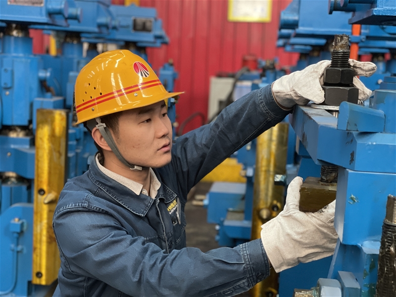 日常工作中,愛琢磨、勤動手不僅讓解冬練就了一身修舊本領(lǐng),對于設(shè)備隱蔽部位消漏他更是“有一套”?,F(xiàn)場設(shè)備“跑冒滴漏”治理一直都是設(shè)備維護的重點,他所負責的液壓油站更是重中之重,一旦發(fā)生故障,影響軋機裝配進度。由于液壓站液壓管路在各機械手坑內(nèi)布置錯綜復雜,出現(xiàn)漏點人員不能及時發(fā)現(xiàn),加之設(shè)備每天在高頻次的使用中管路震動,導致漏點很難處理。他憑借豐富的經(jīng)驗,創(chuàng)新思路,大膽設(shè)計,使用高壓軟管代替不銹鋼原有管路。思路有了,說干就干,從設(shè)計出圖到管路安裝,他全程參與。改造后的管路橫平豎直,不僅減少了油站故障,而且杜絕了高頻次震動造成漏點難徹底的難題,從根源上解決了設(shè)備“跑冒滴漏”問題。