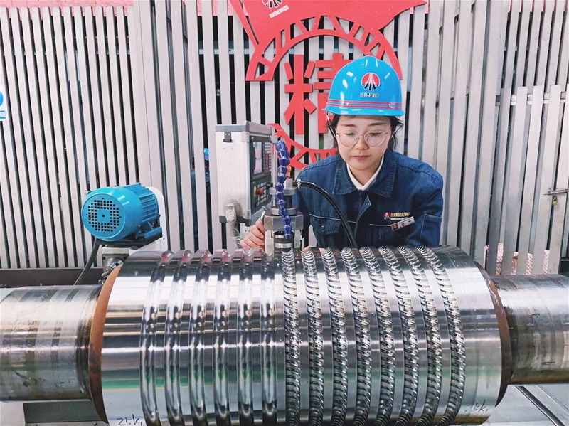 說(shuō)起鋼鐵工人,印象中都是有力的硬漢,但在十里鋼城還有另一道明媚俏麗的風(fēng)景——機(jī)加女工。她在男人扎堆的機(jī)械加工領(lǐng)域,巾幗不讓須眉,方方面面不輸男兒。她就是軋鋼廠生產(chǎn)準(zhǔn)備作業(yè)區(qū)數(shù)控螺紋銑工——張華。