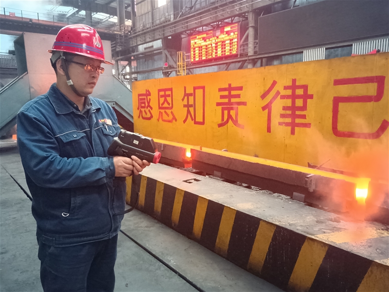 如何讓技術(shù)更好地服務(wù)生產(chǎn)?他做了最接地氣的探索和研究,使軋鋼工藝流程更加規(guī)范,標(biāo)準(zhǔn)更加清晰,執(zhí)行更加堅(jiān)決。今年,在他的帶領(lǐng)下,成功開發(fā)HRB500E低溫直軋工藝。由于該工藝國內(nèi)無先例,開發(fā)難度大,通過多次試驗(yàn)摸索,最終總結(jié)出一套適用于棒一生產(chǎn)線的HRB500E低溫直軋工藝并初步固化。新技術(shù)的應(yīng)用,在促進(jìn)生產(chǎn)穩(wěn)定、降本增效、項(xiàng)目建設(shè)等方面起到了舉足輕重的作用。同時(shí),他牽頭組織技術(shù)攻關(guān)小組,對棒一直軋連鑄坯因頭尾溫差大造成的性能差問題,反復(fù)討論試驗(yàn)方案,打磨細(xì)節(jié),制定詳細(xì)的技術(shù)試驗(yàn)方案和應(yīng)急預(yù)案,最終通過系統(tǒng)參數(shù)優(yōu)化,保障了鋼材通條性能穩(wěn)定,為生產(chǎn)穩(wěn)定順行奠定堅(jiān)實(shí)基礎(chǔ)。目前,HRB500E產(chǎn)品已實(shí)現(xiàn)批量生產(chǎn),力學(xué)性能穩(wěn)定性好,確保訂單及時(shí)兌現(xiàn),成材率、定尺率等主要經(jīng)濟(jì)技術(shù)指標(biāo)大幅提升,有效提升了“禹龍”品牌產(chǎn)品在高強(qiáng)鋼筋市場的競爭力。