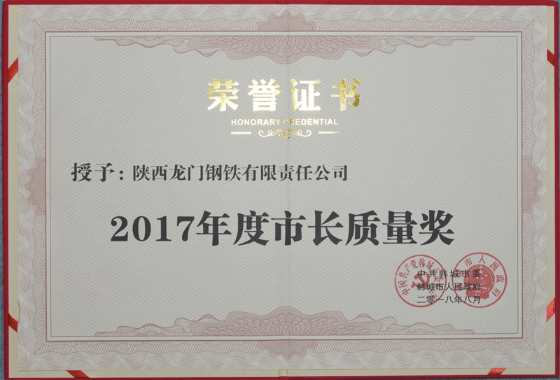 市長質(zhì)量獎(jiǎng)證書 陜西省質(zhì)量標(biāo)桿獎(jiǎng)牌