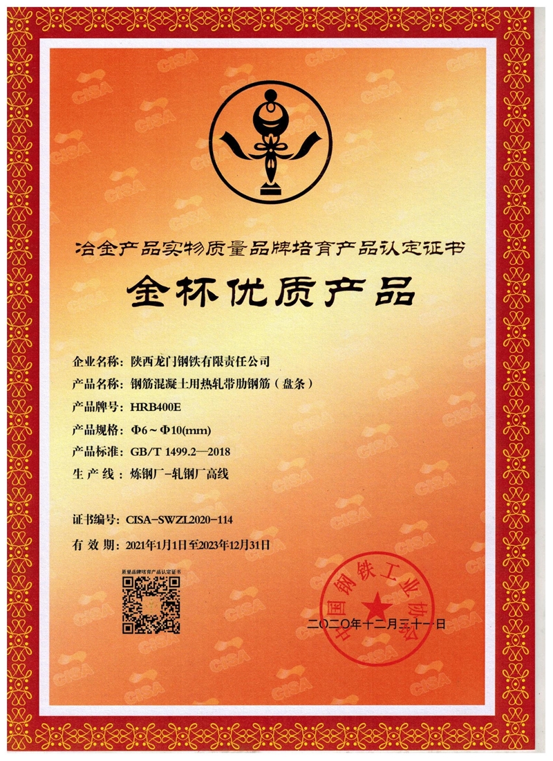 金杯優(yōu)質(zhì)產(chǎn)品證書