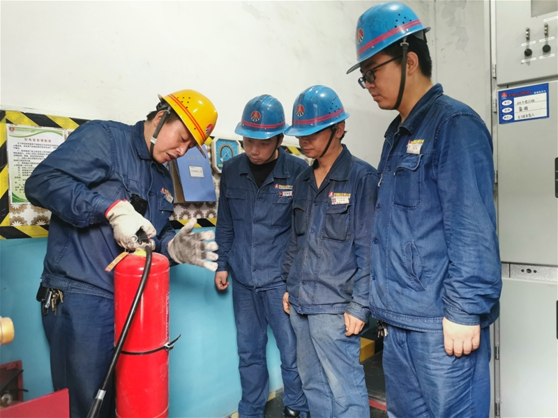 該作業(yè)區(qū)組織開展消防應(yīng)急演練活動(dòng),為員工講解滅火器的構(gòu)造和使用方法等消防知識,現(xiàn)場演示手提式干粉滅火器的正確使用方法,進(jìn)一步增強(qiáng)員工基本防火常識和滅火自救技能,切實(shí)增強(qiáng)全員消防意識。按照消防應(yīng)急預(yù)案,模擬配電室內(nèi)線路短路起火,隨著一聲警報(bào)的拉響,人員立即快速對配電室配電柜滅火。演練過程中,班長重點(diǎn)講解日常生活中應(yīng)注意的消防安全知識,從“防”得提前、“逃”得快速、“滅”得及時(shí)三個(gè)方面詳細(xì)講解了火災(zāi)發(fā)生時(shí)的逃生方法 及應(yīng)對措施,切實(shí)提高員工安全意識和應(yīng)對突發(fā)事件的處置能力。