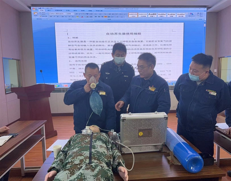 “自動(dòng)蘇生器是一種能自動(dòng)進(jìn)行正負(fù)壓人工呼吸的救援裝置,它能把含有氧氣的新鮮空氣自動(dòng)輸入傷員肺內(nèi)。”氣體防護(hù)中心副主任、注冊(cè)安全工程師呂永剛從自動(dòng)蘇生器的性能、適用范圍、工作原理、操作要領(lǐng)、使用注意事項(xiàng)、日常檢查和維護(hù)六方面,進(jìn)行了深入淺出地講解和演示,并結(jié)合救援實(shí)際案例,用通俗易懂的語(yǔ)言,為參培人員講解應(yīng)急救援處置的基本技能、救援要點(diǎn)和注意事項(xiàng)。
