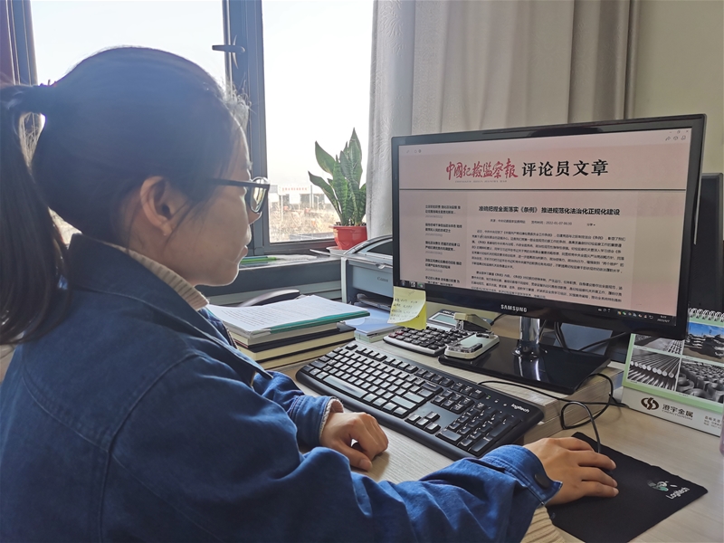 龍鋼公司紀委創(chuàng)新《條例》學習指導模式,豐富學習內容,將理論學習和日常工作有機結合,讓《條例》中的條款要求同日常監(jiān)督執(zhí)紀過程的實際案例有效融合起來,讓《條例》學習更接地氣、更有實效。紀檢監(jiān)察室人員深入各基層紀委進行“問診把脈”,開設與基層紀檢員和廉政監(jiān)督員“零距離”“面對面”交流學習分享,以簡易通俗的交流方式,將更多的理論成果運用無縫隙對接,提升基層紀檢員和廉政監(jiān)督員的業(yè)務能力,真正打通監(jiān)督的“最后一公里”。在日常工作中,加大紀檢監(jiān)察干部的“傳幫帶”力度,通過縱向協(xié)調與指導、橫向協(xié)作與溝通形成同頻共振,推動監(jiān)督下沉、監(jiān)督落地,督促全員履職盡責,開足馬力為龍鋼“春耕”生產加油助力。