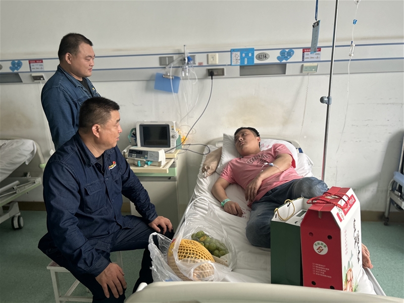 “最近身體恢復(fù)得可好,公司職工大病補助政策很好,住院一大半費用都會報銷……馬上中秋了,希望你早日康復(fù),回家過個團圓的中秋節(jié)。”病房內(nèi),煉鋼廠電儀黨支部書記劉衛(wèi)東正在慰問生病職工。