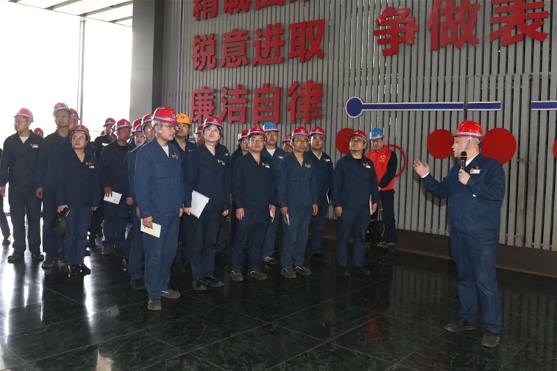 在5#高爐,公司勞模劉江從離開象牙塔、走進鋼廠,愛崗敬業(yè)、守護高爐分享了自己的成長故事,并帶領(lǐng)全體人員走進高爐,向大家普及高爐冶煉知識。