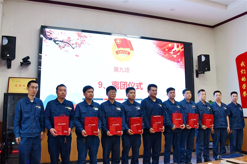 據(jù)悉,為確保更多當(dāng)期離團(tuán)團(tuán)員參加儀式,公司團(tuán)委經(jīng)過(guò)前期充分籌劃、認(rèn)真摸排,統(tǒng)一確定儀式流程,由各級(jí)團(tuán)組織結(jié)合實(shí)際精心準(zhǔn)備離團(tuán)禮物、制作《離團(tuán)寄語(yǔ)》,并根據(jù)倒班情況,統(tǒng)一對(duì)2021年上半年到齡離團(tuán)團(tuán)員舉辦離團(tuán)儀式。