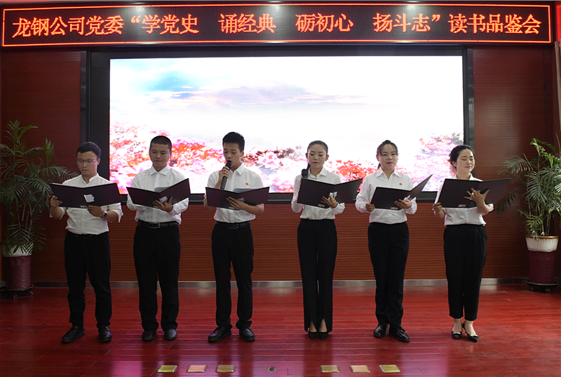 此次讀書(shū)品鑒會(huì)以“學(xué)黨史 誦經(jīng)典 礪初心 揚(yáng)斗志”為主題,創(chuàng)新黨史學(xué)習(xí)方式,以中國(guó)共產(chǎn)黨百年奮斗歷程為軸線(xiàn),分為開(kāi)天辟地(《紅船,從南湖起航》)、艱苦奮斗(《沁園春·雪》《七律·長(zhǎng)征》)、崢嶸歲月(《回延安》《黨旗頌》)、百年風(fēng)華(《黨啊,我的母親》《盛世中國(guó)》《永遠(yuǎn)跟黨走》)四個(gè)篇章,以誦讀詩(shī)詞經(jīng)典的形式,全過(guò)程、全景式、史詩(shī)般展現(xiàn)了中國(guó)共產(chǎn)黨波瀾壯闊的百年歷程,環(huán)環(huán)相扣、由遠(yuǎn)及近,層層深入,為全員奉上了一次形象生動(dòng)的黨史學(xué)習(xí)大餐,將豐富的黨史知識(shí)轉(zhuǎn)化為助推龍鋼高質(zhì)量發(fā)展的磅礴力量。