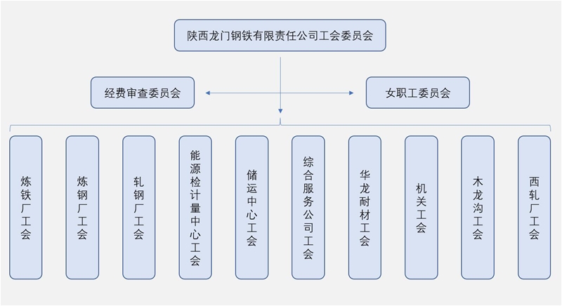 陜西龍門鋼鐵有限責(zé)任公司工會(huì)委員會(huì),隸屬陜西鋼鐵集團(tuán)有限公司工會(huì)委員會(huì),成立于2013年1月4日,同步成立了經(jīng)費(fèi)審查委員會(huì)和女職工委員會(huì),F(xiàn)有會(huì)員10071人,其中女職工2234人,職工入會(huì)率100%,職工代表362人,專兼職工會(huì)干部45人。下設(shè)基層工會(huì)組織14個(gè),基層工會(huì)小組104個(gè),工會(huì)組織健全,機(jī)構(gòu)獨(dú)立。