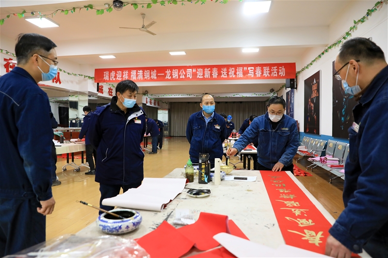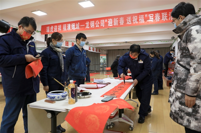 丑去寅來千里錦,牛奔虎嘯九州春。為弘揚(yáng)中華傳統(tǒng)文化,營造喜慶祥和的節(jié)日氛圍,1月18日-20日,由公司工會(huì)主辦、書畫協(xié)會(huì)承辦的“瑞虎迎祥 福滿鋼城”——龍鋼公司“迎新春、送祝福”寫春聯(lián)活動(dòng)在職工活動(dòng)中心圓滿完成。