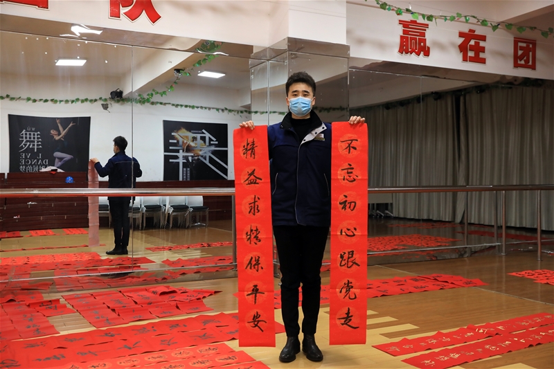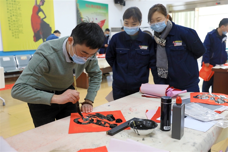 據(jù)悉,本次活動(dòng)共組織6名公司書畫協(xié)會(huì)會(huì)員義務(wù)為廣大職工書寫春聯(lián),三天共書寫了1600多副對(duì)聯(lián),500多個(gè)“福”字。公司志愿服務(wù)人員也積極參與其中,義務(wù)做好安全及防疫等后勤服務(wù)工作。