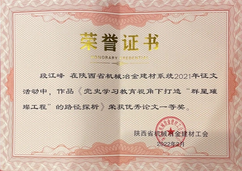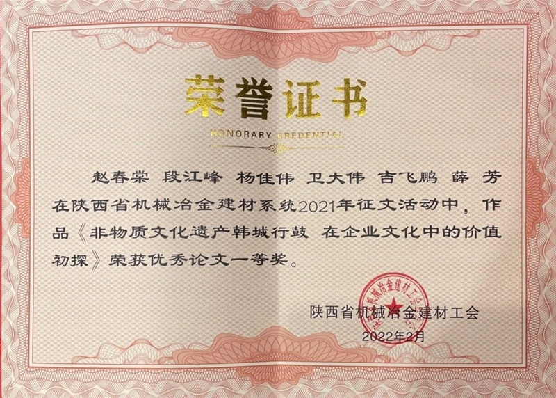 公司論文《非物質(zhì)文化遺產(chǎn)韓城行鼓 在企業(yè)文化中的價值初探》和《黨史學習教育視角下打造“群星璀璨工程”的路徑探析》榮獲優(yōu)秀論文一等獎