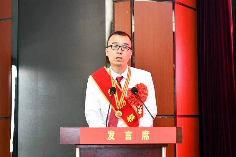 煉鐵廠2#高爐爐長劉甲科代表新一屆獲獎(jiǎng)勞模作了表態(tài)發(fā)言。