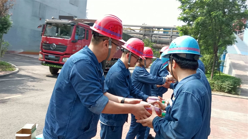 “快看,工會的同志又來送清涼了。”“好的,你先招呼停車,我這就去喊人。”這是8月2日,公司工會“送清涼”時,兩名一線員工交談的一幕。