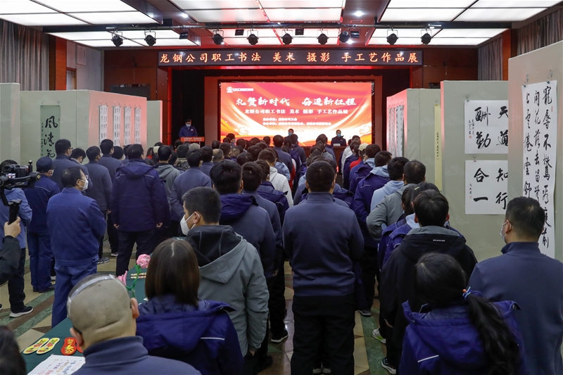 薛社康致辭。他表示,此次書法、美術(shù)、攝影、手工藝作品展中,所有作品均是一線干部職工的最新力作。他們通過光影藝術(shù)、筆墨抒情,展現(xiàn)了近三年來公司上下一心,“重整行裝再出發(fā) 浴火重生開新局”的鏗鏘步伐,謳歌了龍鋼工匠、勞動模范等先進(jìn)典型,展現(xiàn)了廣大干部職工積極投身企業(yè)生產(chǎn)一線的火熱場景和歷史記憶。同時(shí)也為廣大書畫、攝影愛好者提供了一個(gè)發(fā)現(xiàn)自我、充實(shí)自我、展現(xiàn)自我的舞臺,引導(dǎo)全體干部職工從黨的故事、革命的故事、龍鋼的故事中,堅(jiān)定理想信念,汲取奮進(jìn)力量。希望廣大干部職工以此次活動為契機(jī),追憶初心故事、傳承紅色基因,在黨的二十大精神指引下,堅(jiān)定不移跟黨走、團(tuán)結(jié)奮進(jìn)新征程,在藝術(shù)創(chuàng)作和工作生活中,弘揚(yáng)偉大建黨精神,自信自強(qiáng)、守正創(chuàng)新,踔厲奮發(fā)、勇毅前行,為企業(yè)高質(zhì)量發(fā)展作出新的更大的貢獻(xiàn)。