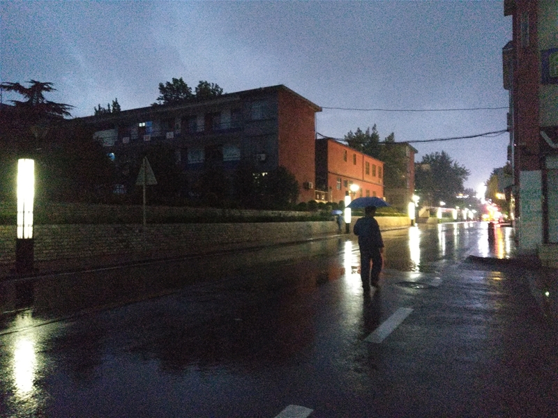 就在人們的期盼和意外之中,正午的天空毫無征兆的下起了雨。只是這雨不知醞釀了多久,才用它獨特的方式來渲染它存在的重要,細細的雨絲將天和地之間穿成無數(shù)雨簾,任車輛、行人在這獨一無二的杰作間穿梭前行。孩子們放學時間,龍鋼大道一朵朵花花綠綠的雨傘,在雨中高舉晃動、熙攘穿梭,還有騎電動車接孩子的人,也都穿上了五顏綠色的雨披,接上孩子,在雨中疾馳而過。