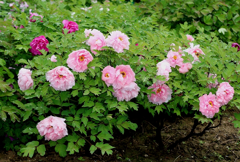 雨過(guò)天晴后,我獨(dú)自一人第三次去了牡丹園,果然牡丹樹(shù)下有了好多被雨滴打落的花瓣,也有最早開(kāi)花的自然凋落花瓣。雖然有了殘缺,但好多正盛的花兒依然華美芳菲又國(guó)色天香,還有個(gè)別含苞欲放的正在抓住春光的尾巴努力綻放,向人們展示自己鮮艷的美、奔放濃郁的香。