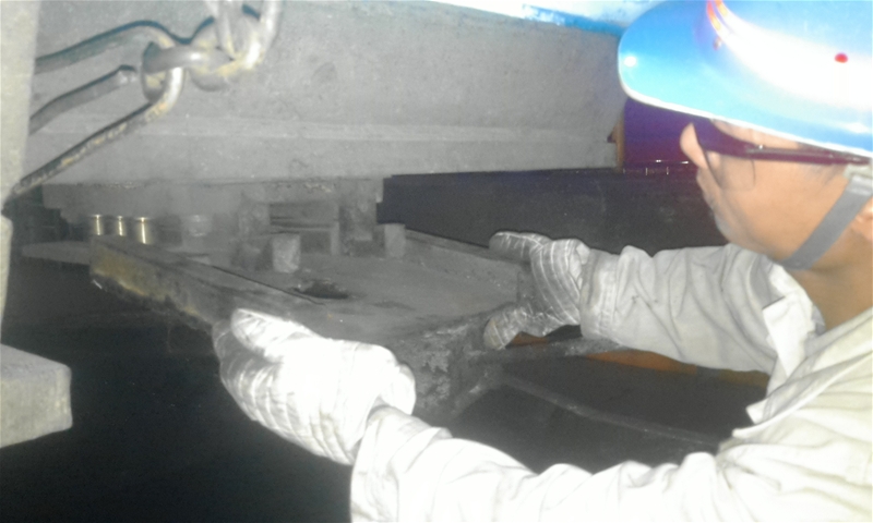 項(xiàng)目簡(jiǎn)介:5#機(jī)定重設(shè)備投入使用以來,由于頻繁起落稱重,液壓連接絲桿自轉(zhuǎn)一方面造成傳感器線路繞圈拉扯,使得稱重?cái)?shù)據(jù)不穩(wěn),影響稱重作業(yè),另一方面造成連接桿脫絲,傳感器掉落、損壞。使用∮14或16鋼筋長(zhǎng)15cm左右,做為吊框復(fù)位手柄,長(zhǎng)30cm角鐵做為復(fù)位卡槽;將2根角鐵平行與定重臺(tái)架焊接,兩根角鐵相隔4cm左右,將鋼筋一頭完全放入卡槽內(nèi)部,另一頭垂直與定重臺(tái)架,水平焊接到定重連接絲桿上。稱重過程中絲桿自轉(zhuǎn)時(shí),鋼筋左右擺動(dòng),通過卡槽的阻擋達(dá)到阻止其自轉(zhuǎn)的目的(如左圖1)。在全公司范圍內(nèi)開展降本增效活動(dòng),精打細(xì)算的成本意識(shí),我們對(duì)該裝置構(gòu)造進(jìn)行了又一次優(yōu)化,利用吊框卡槽,使用“Z”字形直角鋼筋直接焊接到定重連接絲桿上,達(dá)到了阻止連接絲桿自轉(zhuǎn)的目的。大大減少了人員焊接作業(yè),節(jié)省了鋼鐵物料,提高了檢修效率。目前5#機(jī)8個(gè)流已經(jīng)全部安裝,截至現(xiàn)在未發(fā)生傳感器掉落的情況,同時(shí)稱重?cái)?shù)據(jù)穩(wěn)定,定重合格率由65%提高到72%(依據(jù)煉鋼定重?cái)?shù)據(jù)集數(shù)據(jù))。為軋鋼廠提供統(tǒng)一重量標(biāo)準(zhǔn)的鋼坯,使其定尺率由得到了穩(wěn)定、提升,減少了坯料浪費(fèi),為公司降本增效做出了重大貢獻(xiàn)。