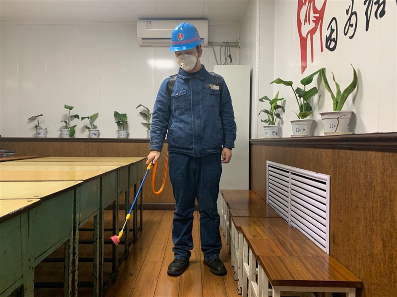 當(dāng)?shù)弥咔閬硪u,作為一名見習(xí)安全員,他主動向作業(yè)區(qū)領(lǐng)導(dǎo)申請參與防疫工作。為了將疫情防控工作做扎實,確保作業(yè)區(qū)防疫措施到位,每天他都背著15升的消毒噴霧機,對作業(yè)區(qū)各個區(qū)域、角落進行全面消毒;堅持每天密切關(guān)注職工健康和口罩發(fā)放情況;為了讓大家更好地了解防疫知識,他主動制作防疫小視頻,利用微視頻宣講、微信小知識向作業(yè)區(qū)員工講解疫情防控知識;并與受疫情影響未上班的同事進行電話聯(lián)系,詳細詢問身體情況,安撫情緒。