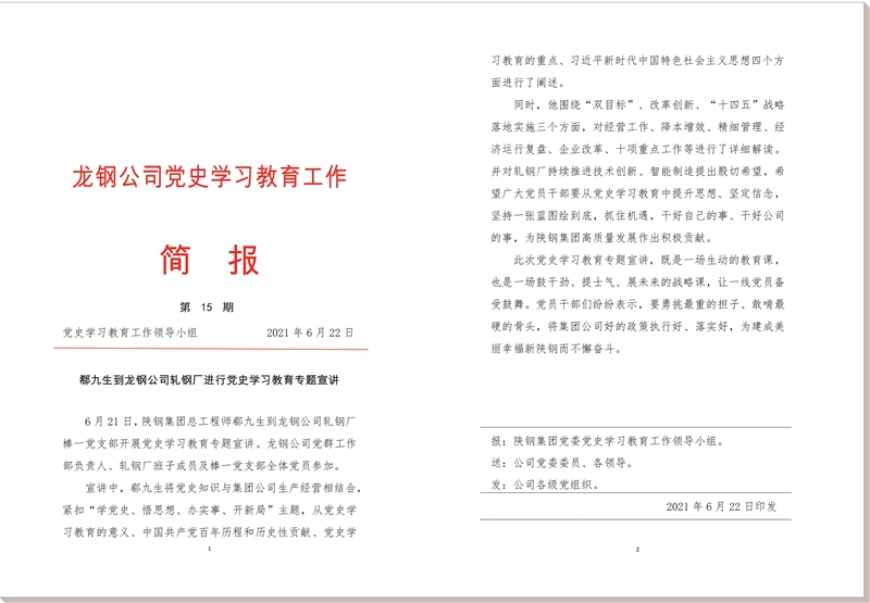 龍鋼公司《黨史學(xué)習(xí)教育工作簡(jiǎn)報(bào)》第15期